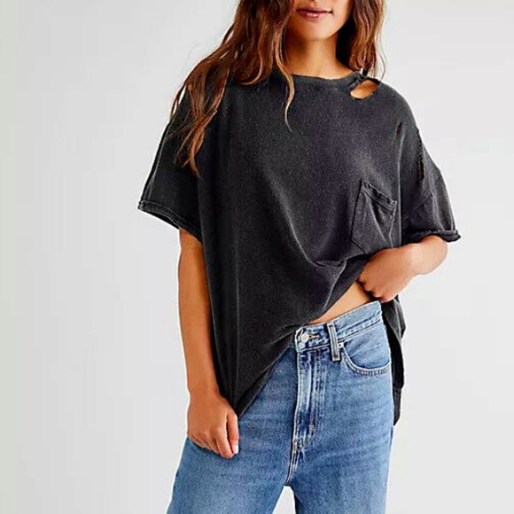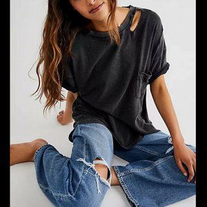 Free People - We The Free - Washed Black Oversized Distress Rubi Tee
