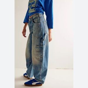 FREE PEOPLE WE THE FREE WOMENS LOREN CARPENTER BARREL JEANS DENIM SIZE 30 BLUE