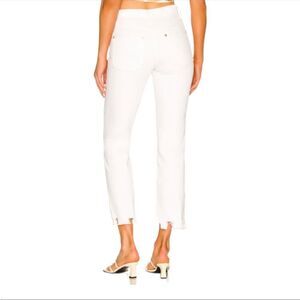 Super trendy Chalk white tapered jeans by We the Free for Free People. High rise. Button fly. Distressed. Raw edge hem. Back yoking. Five pocket design. Great condition!! Womens size 25 (0).