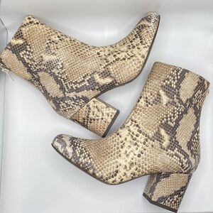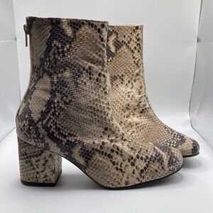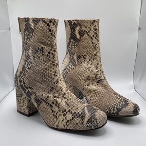 FREE PEOPLE WOMEN’S CECILE SNAKE PRINT BLOCK HEEL BOOTIES TAN BROWN SZ 35.5