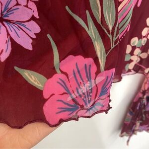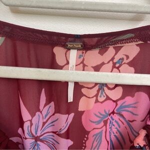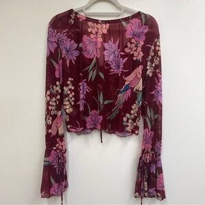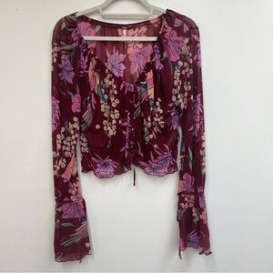 FREE PEOPLE WOMEN'S FLORAL PRINT OF PARADISE TIE FRONT CROP TOP loose mesh top