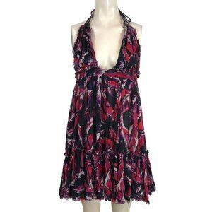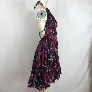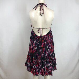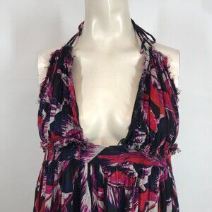 FREE PEOPLE -WOMEN'S LARGE - 100 DEGREE HALTER DEEP V NECK RUFFLE BOHO DRESS