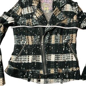 FREE PEOPLE WOMEN’S MOTTO JACKET SIZE 6 BLACK WITH TAN & GREEN