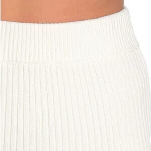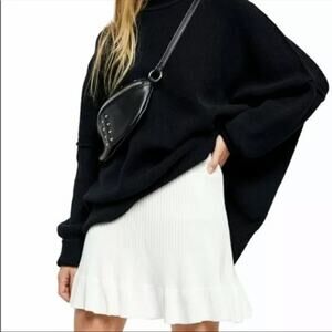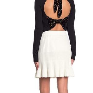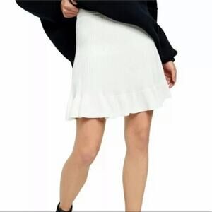 A ribbed knit mini skirt with a flounce hem.