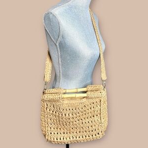 FREE PEOPLE WOVEN PAPER PURSE CROSSBODY BEACH BAMBOO