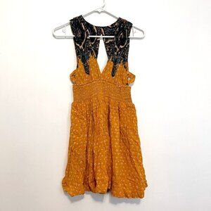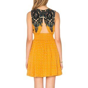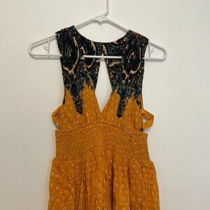FREE PEOPLE Walking Through My Dreams Dress Mustard Orange Daisy Floral Cutout S