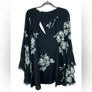 FREE PEOPLE Wanderer Boho Bell Sleeve Mini Dress Size SMALL Charcoal Gray Blue