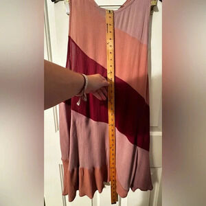FREE PEOPLE Way of the World Tunic Asymmetrical Berry Tone Stripes LOW T Back M