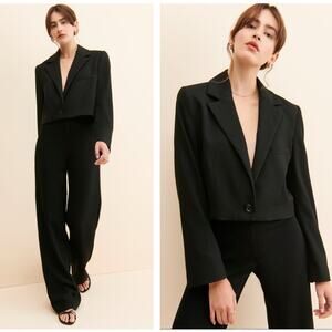 FREE PEOPLE We The Free Block Party Crop Blazer Black Sz S NWT $148 {3A18}