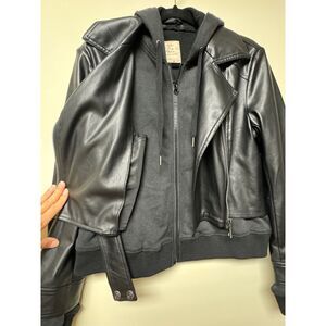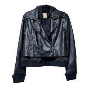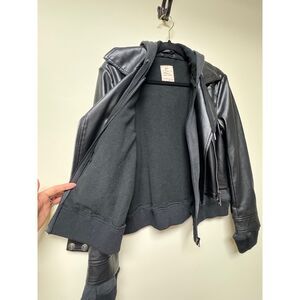 FREE PEOPLE We The Free Hooded Vegan Leather Motocycle Jacket, Sz XS