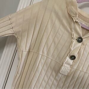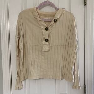 FREE PEOPLE • We The Free In The Mix Ribbed Ivory Raw Trim Long Sleeve Top