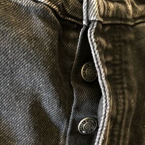 These are the PERFECT jeans! Love the straight leg cut with the slits! The color is everything I want in a pair of jeans. I would pair with a graphic tee! The black acid wash is so cool, these are supposed to look like this, great condition. No stretch.