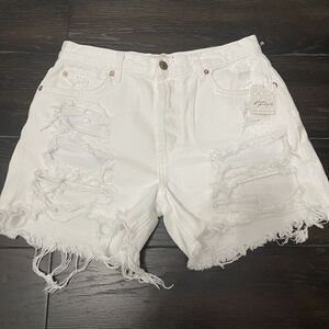 FREE PEOPLE We The Free Maggie Denim Shorts Size 27 NWT White Distress Festival