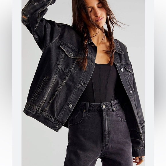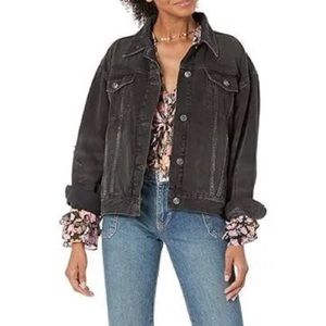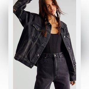 FREE PEOPLE We The Free NEW Jolene Trucker Jacket NEW Washed Black Size S