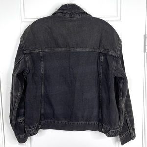 Your new go-to trucker jacket with a button front, oversized silhouette and classic denim fabrication for goes with anything style from season to season. Subtle distressing for a lived-in look, this jacket will instantly be your new favorite.
