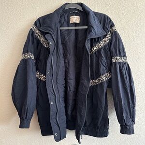 FREE PEOPLE We The Free On My Mind Winter Oversize Bomber Jacket in Navy Sz. M