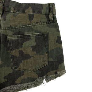FREE PEOPLE We the Free Camo Combo Distressed Raw Hem Cutoffs Size 24