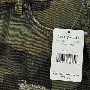 FREE PEOPLE We the Free Camo Combo Distressed Raw Hem Cutoffs Size 24