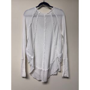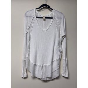 FREE PEOPLE We the Free Catalina V-Neck Thermal Waffle Knit L/S Tee, White, Sz S