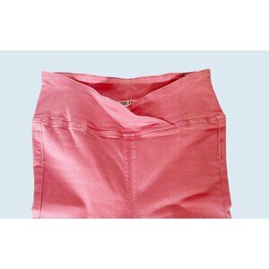 Nice pair of bell bottom / flare jeans by Free People / We the Free. Pink. Pull on. Elastic cross waist. Mid rise. 55% cotton / 22% viscose / 22% polyester / 2% elastane. Size 26. Pre-owned and gently worn in really great condition!