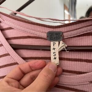 FREE PEOPLE We the Free Round About Tee Stripe Thermal Top Size Small
