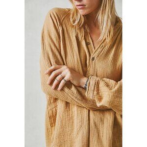 FREE PEOPLE We the Free Summer Daydream Frayed Button Down Shirt Taupe Size M NE