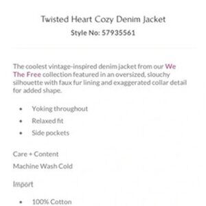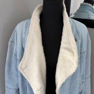FREE PEOPLE We the Free Twisted Heart Cozy Blue Denim Fleece Jacket Medium