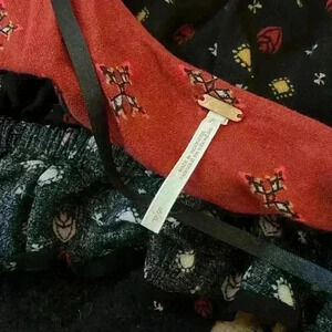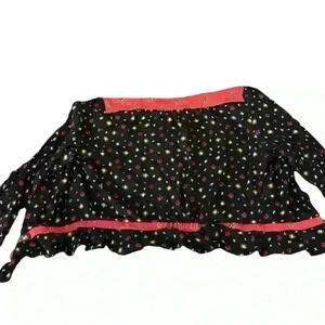 FREE PEOPLE Where We Roam Red and Black Printed Cropped Blouse Size Small
