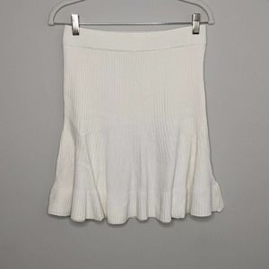 BRAND NEW WITH TAGS / NEVER WORN: Free People "Solid Gold" Mini Skirt in a Cream color. Elastic waist, pull on style, ribbed knit mini skirt with a flounce hem. MSRP $60