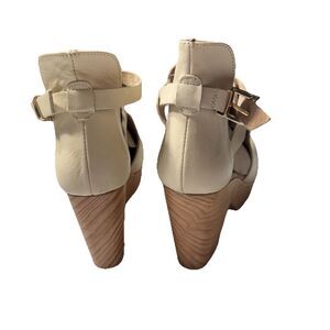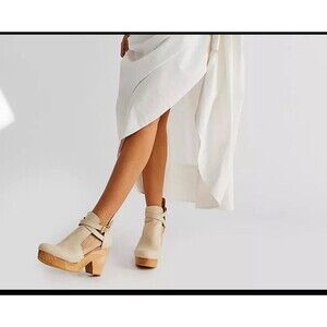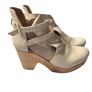 FREE PEOPLE White Strappy Leather Cedar Wooden Clog SzEU39/ 9 GUC Small Mark