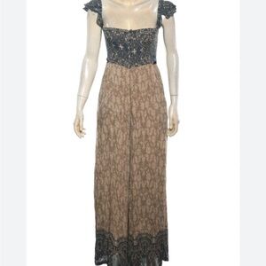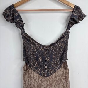 FREE PEOPLE Wide Leg Jumpsuit S Festival Boho Pockets Cap Sleeve Button Front