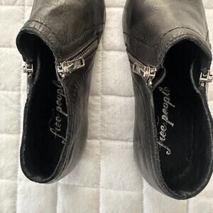 FREE PEOPLE Womens Ankle Boots 36 US 6 Black Leather Low Heel Pointed Toe Zipper