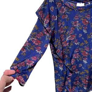 FREE PEOPLE Women’s Blue & Red Floral Ruffle Trim Boho 3/4 sleeve top