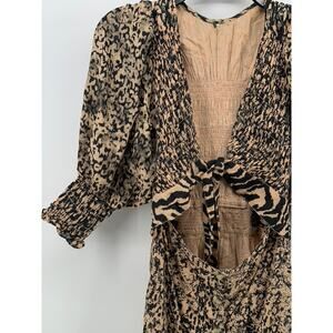 FREE PEOPLE Women's Brown Printed V-Neck Cutout Short Elbow Sleeve Casual Maxi Dress SZ XS