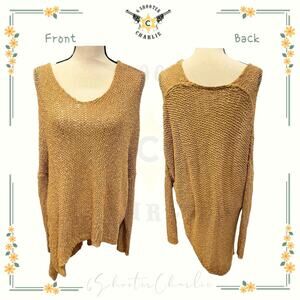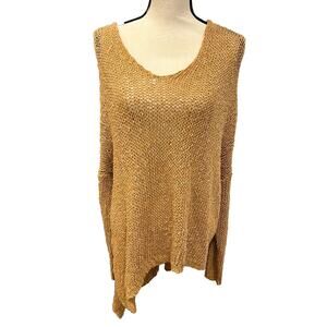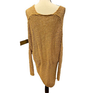 Free People Womens Cotton Blend Brown Tan Oversized Hi-Lo Boho Sweater Sz XS