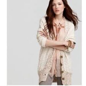 FREE PEOPLE Women's Cream Bumpy Road Long Line Cable Knit Cardigan Size XS