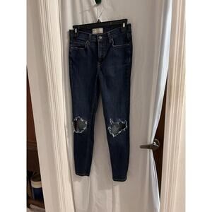 FREE PEOPLE Womens High Rise Dark Wash Busted Knee Skinny Jeans Size 27 Boho