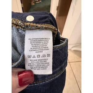 Elevate your denim game with these Free People high-rise skinny jeans in a dark wash. The busted knee detail adds a touch of bohemian flair, while the button and zipper accents provide a stylish closure. Made from comfortable and durable denim fabric, these jeans are perfect for any season and occasion.