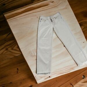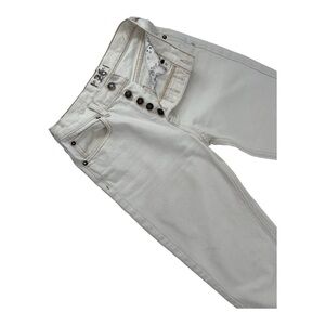 FREE PEOPLE Women's Ivory Button Fly Raw Hem Slim Jeans Size 26 Any minor imperfections are shown in my pictures and video