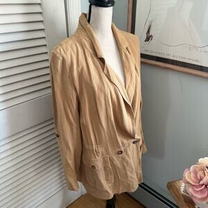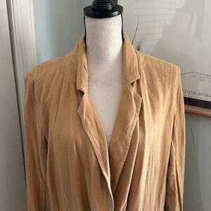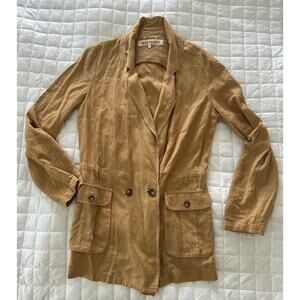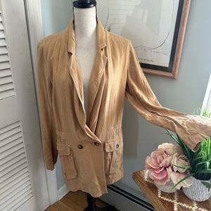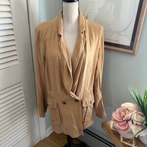 FREE PEOPLE Womens Jacket Small Tan Charly Blazer Oversized Linen Blend Relaxed