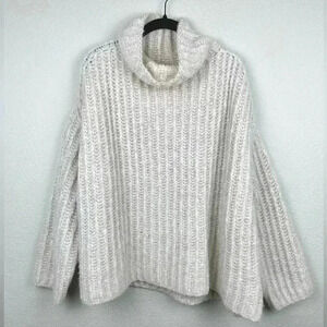 FREE PEOPLE Women's Large Boxy Turtleneck Sweater in Pearl Alpaca Wool Blend Kni