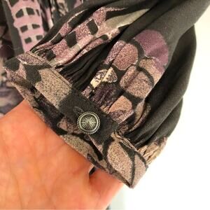 Button cuff sleeve, double slit skirt. Lined. Cutout front. Waistline has ties in each side to cinch waist. Size XS.