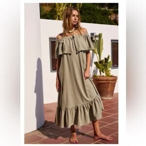 FREE PEOPLE Women's Off The Shoulder Midi With Back Cut Out Ruffle Hem Size XS