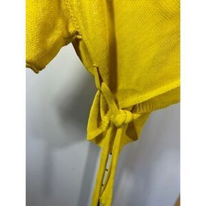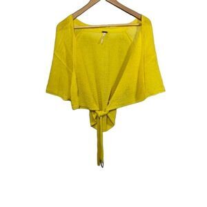FREE PEOPLE Women's Oh Hello Wrap Front Knit Cropped Cardigan Yellow Size Small