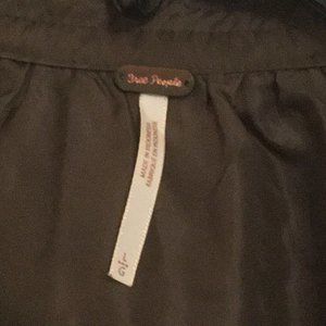 Free People bomber jacket. Lightweight bomber jacket with an ultra-cool girl feel. Exposed side pocket details and button closure at the neck. Stretchy band at the waist and sleeve cuffs for an easy, comfortable fit. Perfect for throwing over everything from your favorite tee to your prettiest party dress. 100% polyester. Machine wash. Model is wearing a size Small. The jacket being sold is size Large.