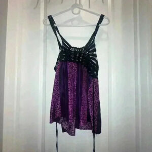 FREE PEOPLE Women’s Purple Silk Open-Crocheted Top Tie-Back