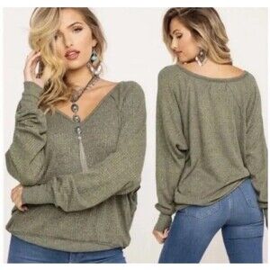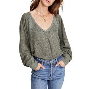 FREE PEOPLE Womens Santa Clara V-Neck Thermal Sweater Top Ferngully Size XS