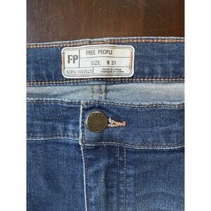 FREE PEOPLE Womens Size 31 Blue Denim Jeans Frayed Hem Factory Distressing