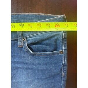 The product is a pair of Free People women's blue denim jeans in size 31 with a distressed factory finish. These skinny jeans feature a high-rise waist and a frayed hem, giving them a unique and stylish look. With a 27-inch inseam, these jeans are designed for a regular fit and are perfect for those looking for a trendy and fashionable addition to their wardrobe.