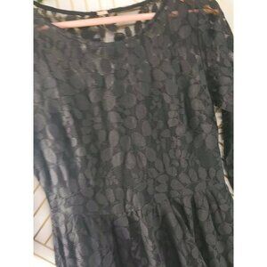 FREE PEOPLE Women's Solid Black Floral Leaf Lace Asym Asymmetrical Hem Dress 4?